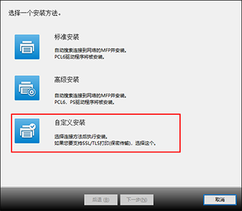 弹出[驱动程序安装]界面,选择[自定义安装]。